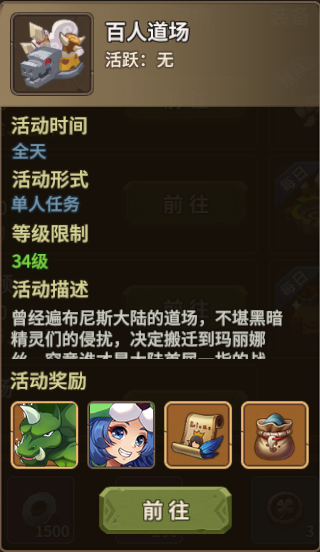 3.百人道场,挑战的层数越高,能够获得的宠物品质也就越高;
