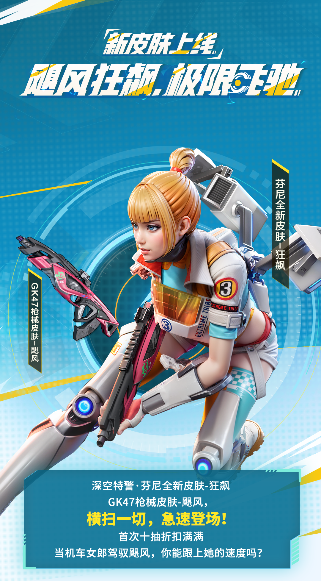 深空特警·芬尼全新史诗级皮肤「狂飙」急速来袭,GK47皮肤-飓风伴随左右!手握飓风的机车女郎,还能看到我的尾灯吗?