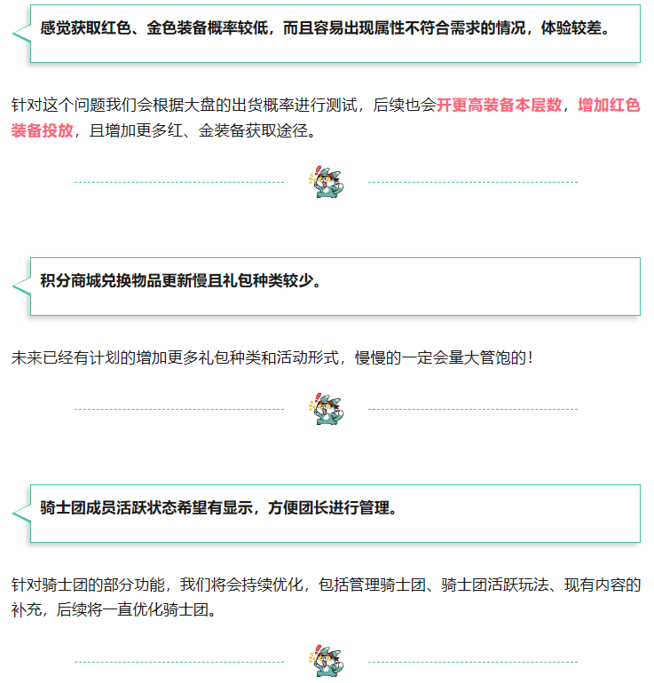 感谢所有向我们建言献策的骑士
