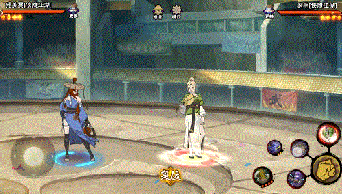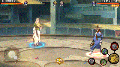 纲手在入场时拍桌腾跃而起,空中转体数圈后优雅落地。罗扇执于胸前蓄势待发。