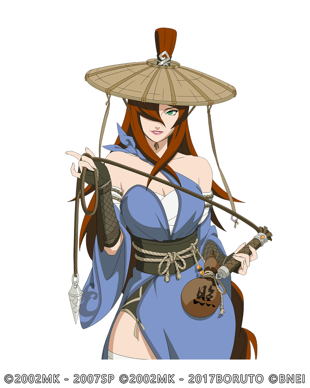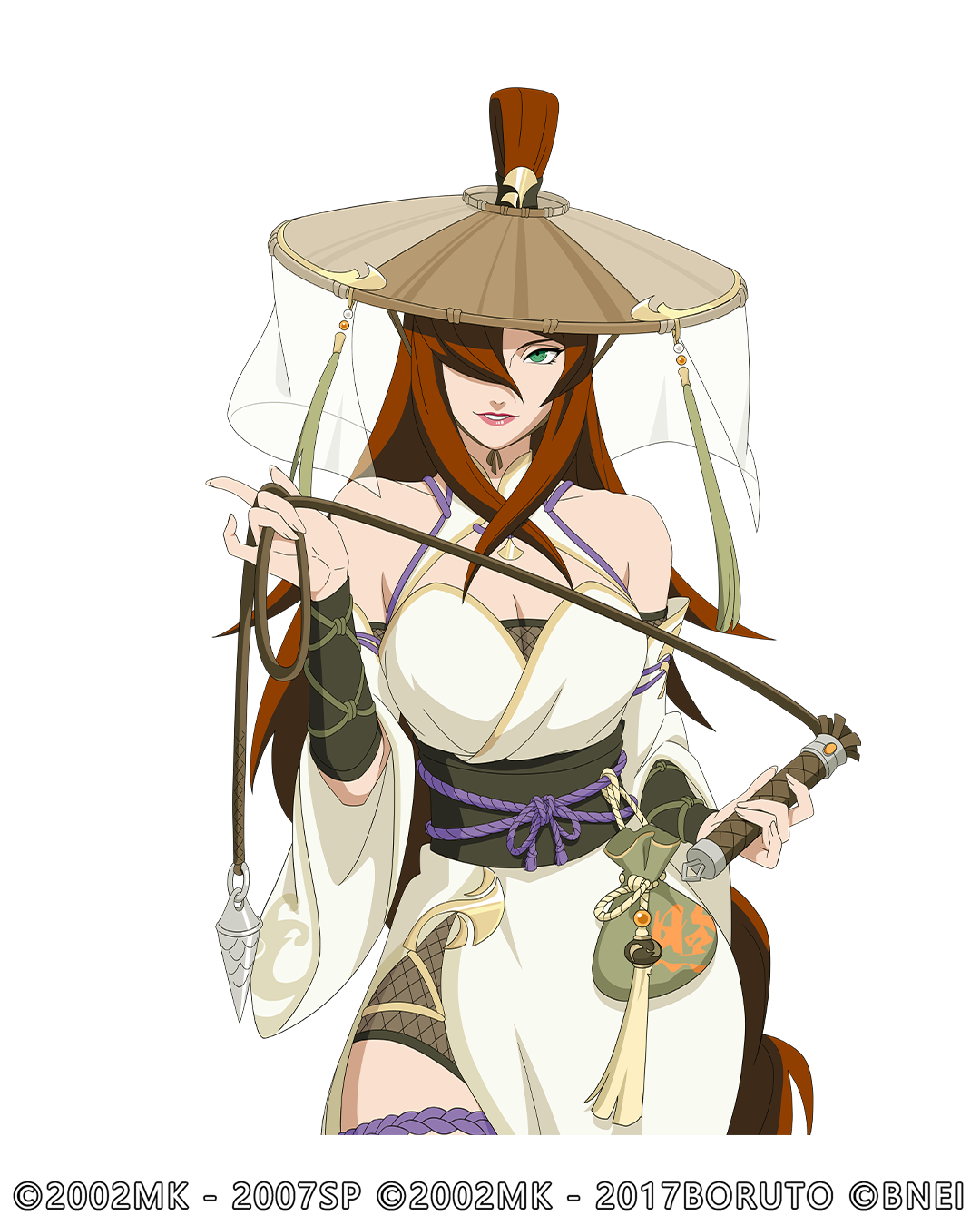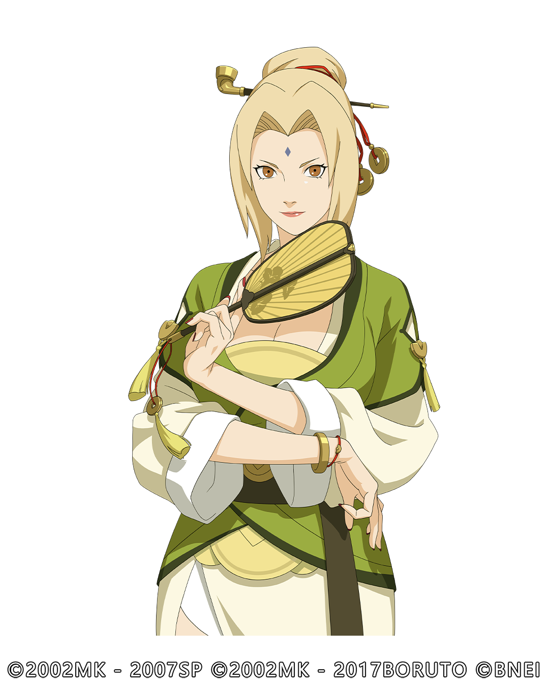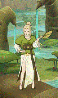 纲手身上衣装以绿、白为主,在大漠中显得生机盎然,强调出个人特色。