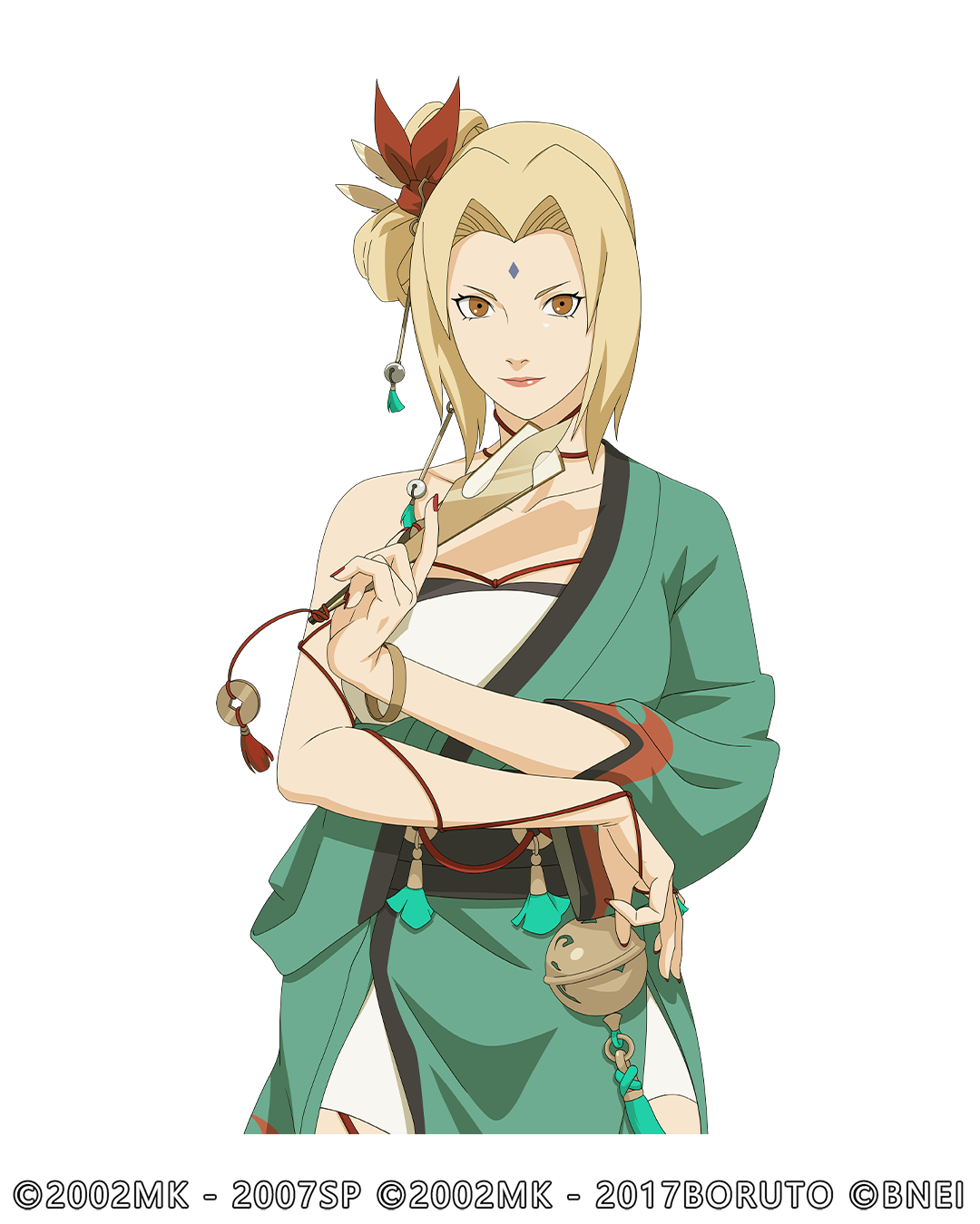 纲手更换衣装后的发式更加婉约,身上替换为铃铛元素,成熟又俏丽。