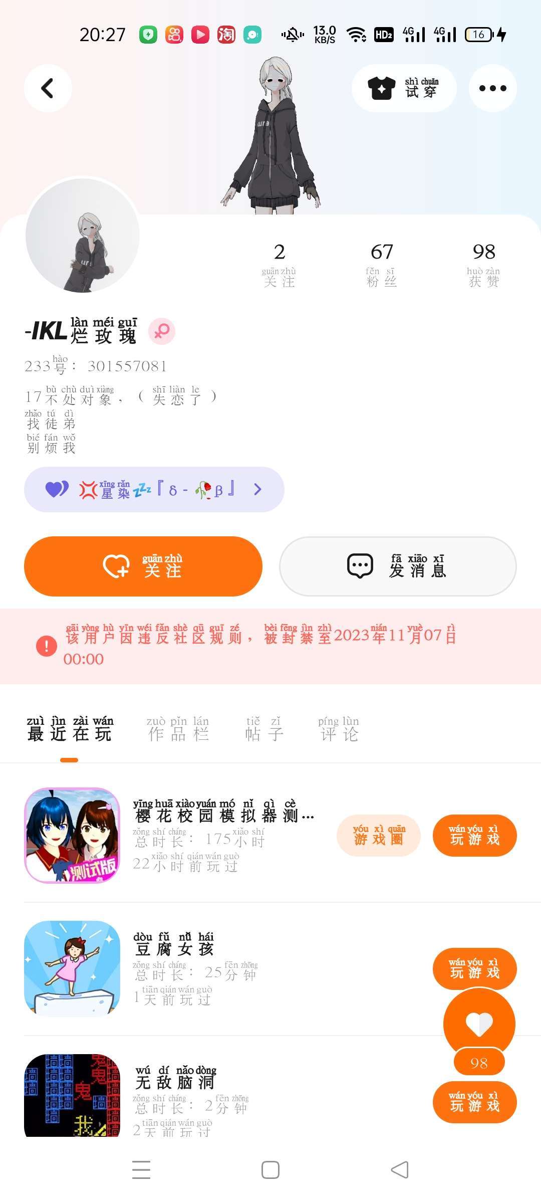 额,666你有闺蜜还跟我处啊?骗别人感情好玩吗?以前还心疼你被封号了,现在想封你号也是活该!!!