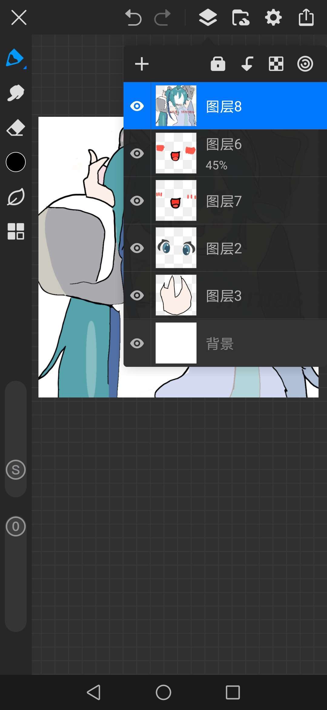 🌚,没错的,我画了个初音未来的头像! 一个小时不到,只画了45分钟 总感觉怪怪的哈