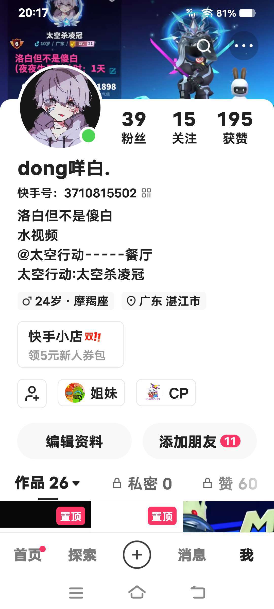 3.有快手/抖音的话,我会建一个群,希望你们可以加