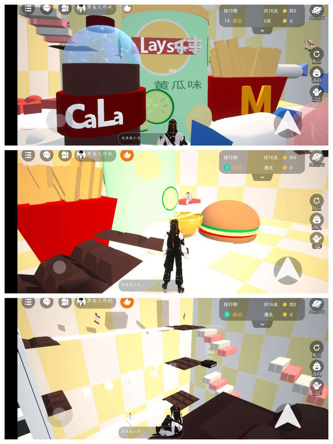 满满的零食元素结合的恰到好处 乐事薯片 可口可乐 薯条 日常中常见的零食貌似都有👀制作的也非常还原 跑酷比较简单 轻松通关