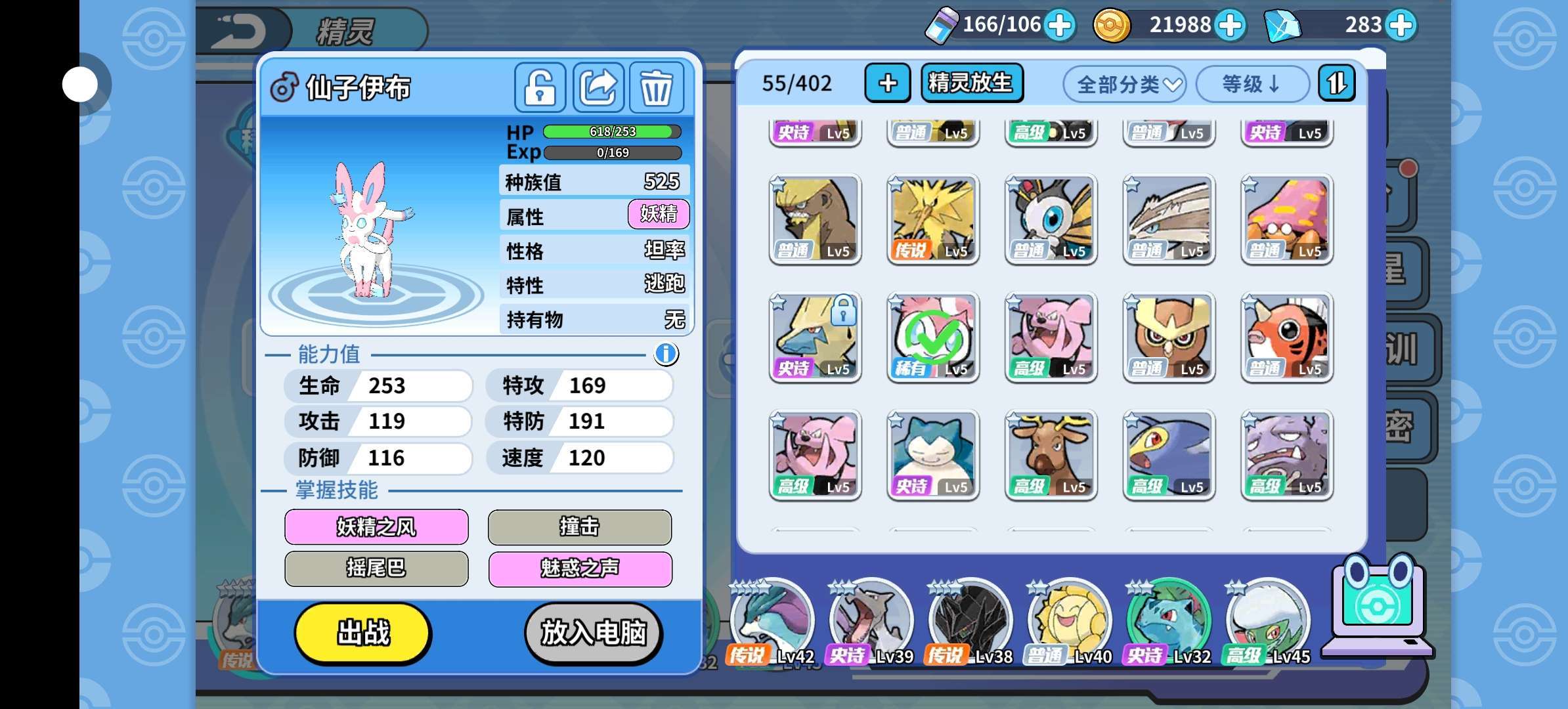 我是伊布爱好者我有三个冰伊布和一个仙子伊布冰伊布是刚抓