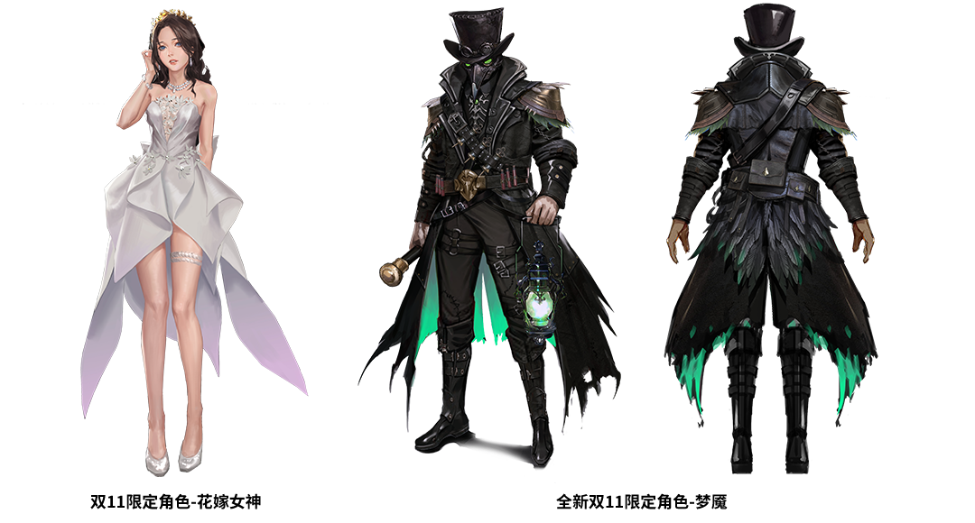 ·11月9日—11月15日,双11限定角色花嫁女神年度返场,新角色梦魇双十一限定来袭!商城限时折扣,再送限时点券!