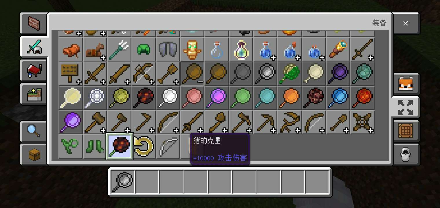 在这里面还有一些离谱的武器🍂,比如上面〔猪的克星〕,伤害竟达到了10000😱!真是太6了🙃