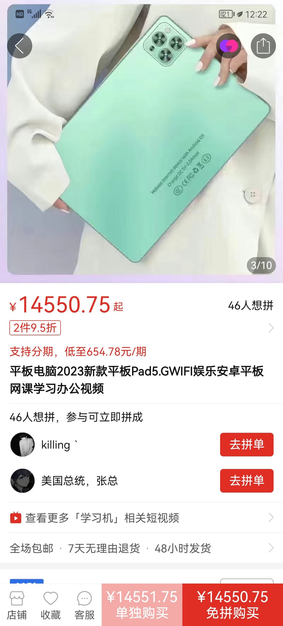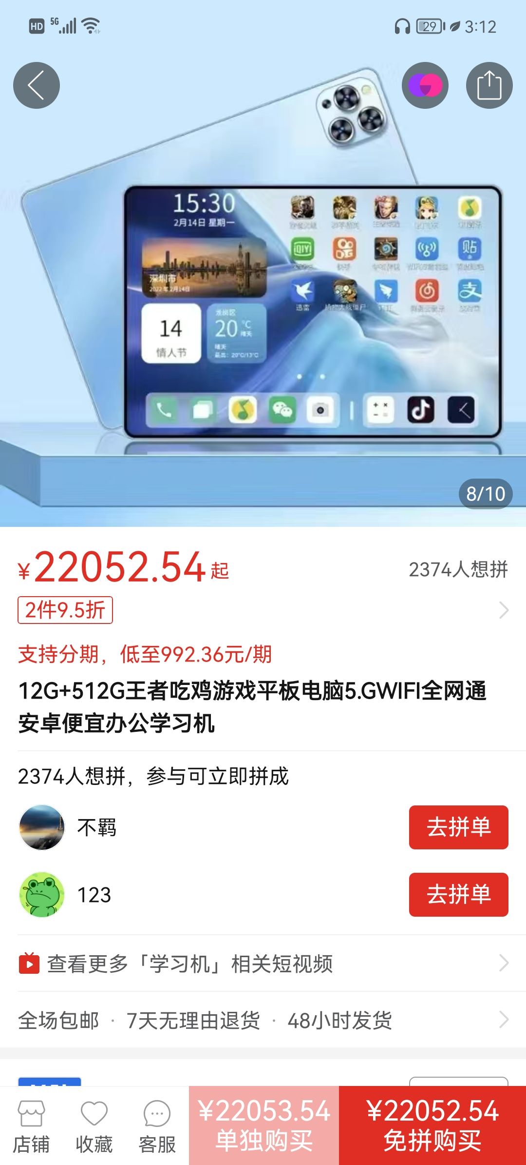 拼多多平板电¥22052.54元