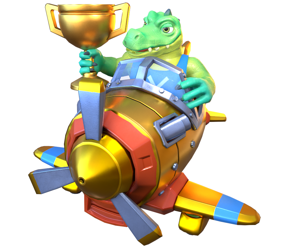 作为空中杂技大师,王牌鳄鱼十分擅长空中表演。钻火圈,极速大转弯等高难度项目均不在话下。身下的黄金飞机由他亲自组装,可在空中自由飞行,真不愧是王牌!