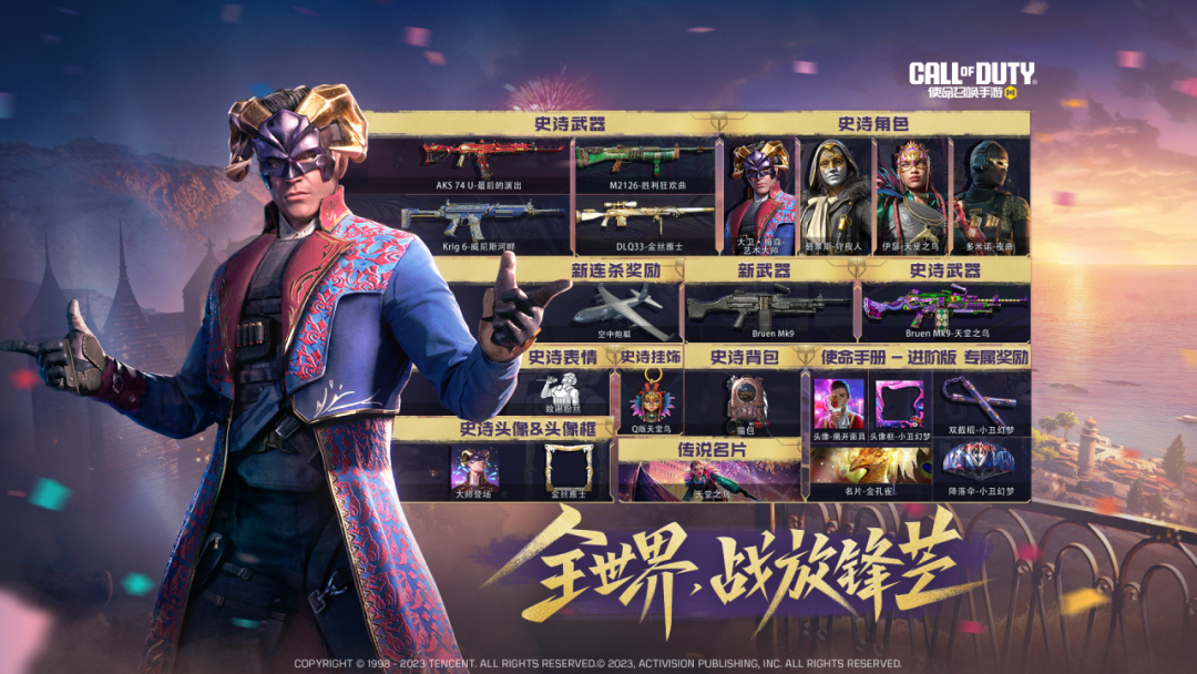 除了精彩的玩法以外,使命手册S10“全球行动”也将与战士们正式见面。五把精美的武器,四个造型独特的角色皮肤,还有诸多精美道具,一定能让战士们在战场之上,尽显锋芒!