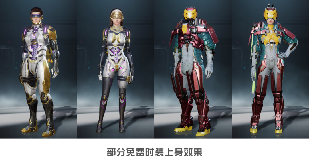 金色品质时装可免费兑换,还有各种带有未来科技感的时装。自由探索就能获得外观颗粒,物美价廉~