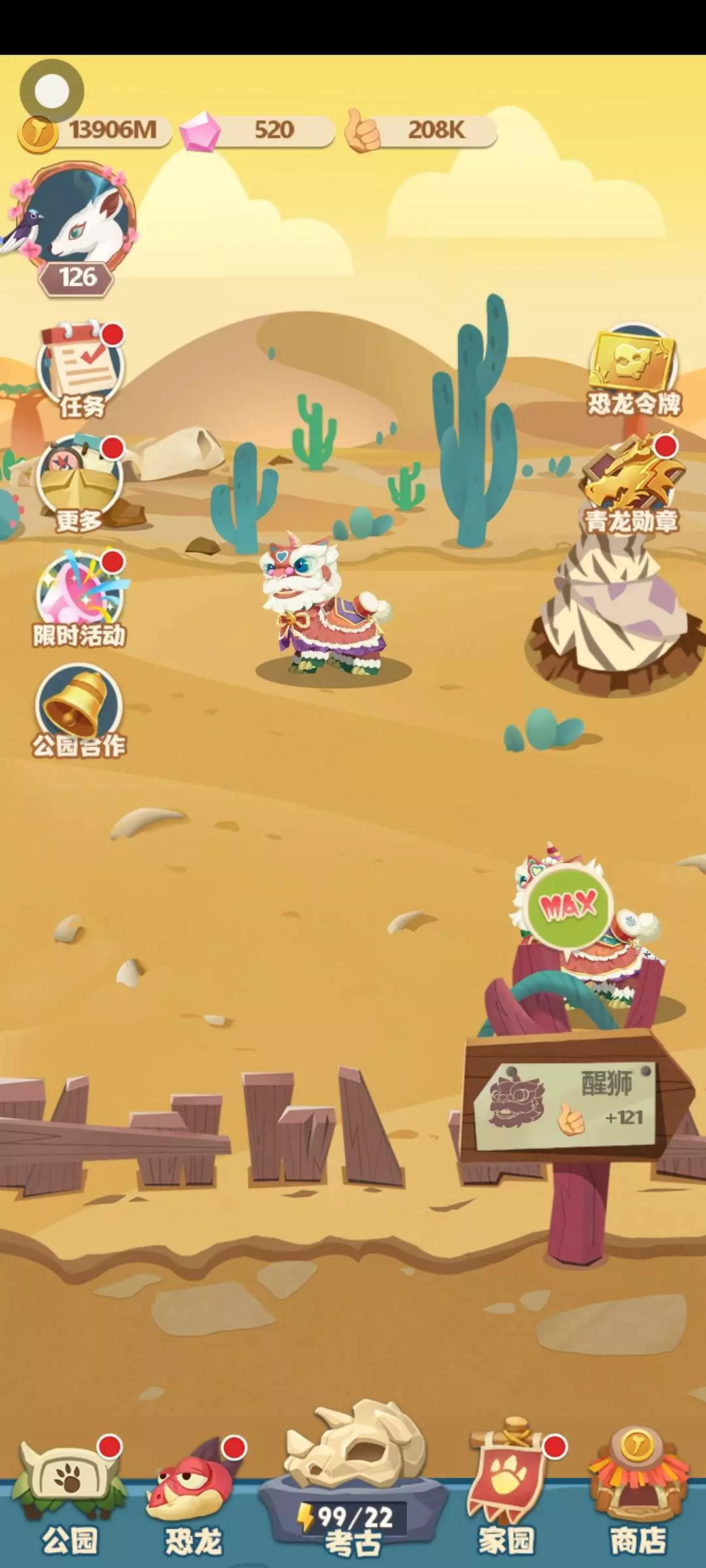 他们曾是中生代时期地球的统治者,如今却长眠在地下深处。让我们开启一段奇妙的发现之旅,在《梦幻恐龙园》中发掘恐龙化石。只要集齐恐龙的化石,即可通过生物科技将其复活,并让它们生活在你的恐龙公园中。 经营你的恐龙公园,虽然公园起初空空荡荡,但随着公园中展示恐龙的增加,公园会获得更高的人气,游客们也将接踵而至。 (专属礼包码:F233,免费兑换!) 【游戏特色】 1.模拟考古发掘现场,靠你的观察力和运气找到珍贵的恐龙化石! 2.集齐恐龙化石,并通过生物科技将其复活,让史前巨兽重见天日的任务就交给你了! 3.两只相同的恐龙可以合成进化为更高级形态,你想看看它们的完全体是什么样吗? 4.经营恐龙公园,收集各种各样的恐龙,打造全球最大的恐龙公园! 5.自动化放置经营,即使你不在线,也能躺着赚钱! 6.组建恐龙战队,称霸恐龙时代!