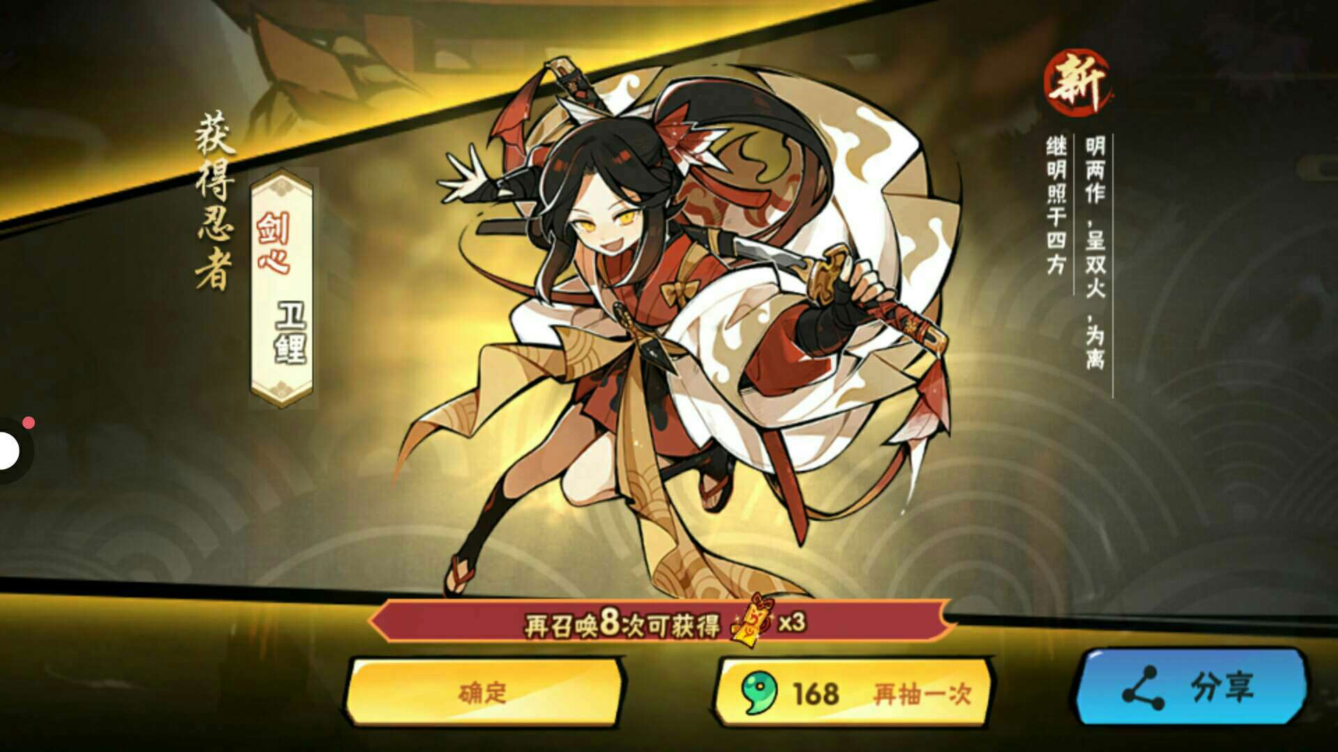 家人们谁懂啊!岀新忍者的时候单抽怎么都抽不到,去抽原本的单抽出忍者,但不是我想要的呜呜呜~