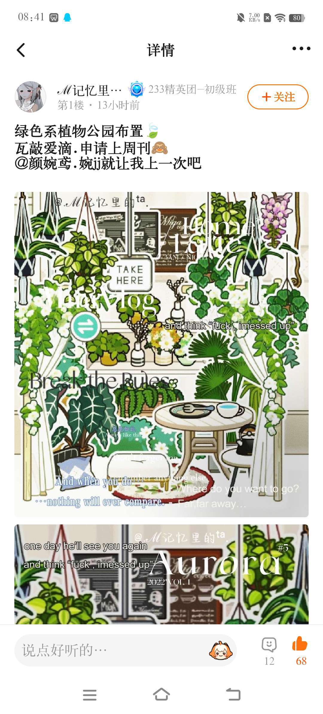 ☆绘画组,☆美图组,☆装修组,☆日常组,☆分享组,可以进行发布作品哦,申请加(艾特我),让我更加了解你和关心你鸥,快来和我一起分享高质内容叭