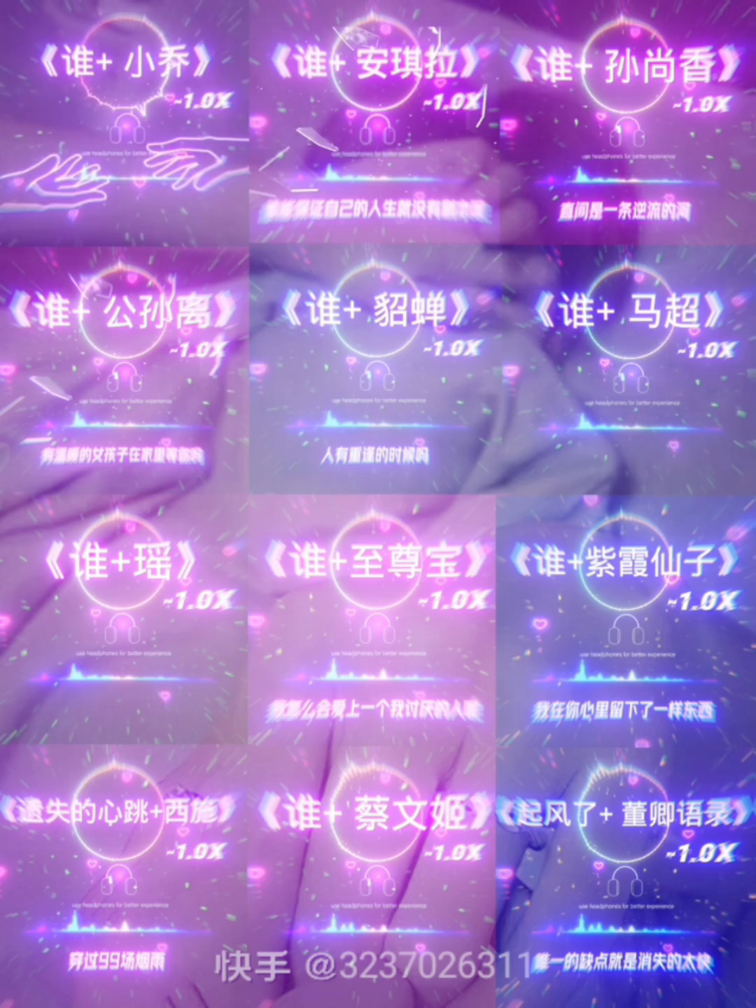 小乔,安琪拉,孙尚香,公孙离,貂蝉,马超瑶,至尊宝,紫霞仙子,西施,蔡文姬,董卿