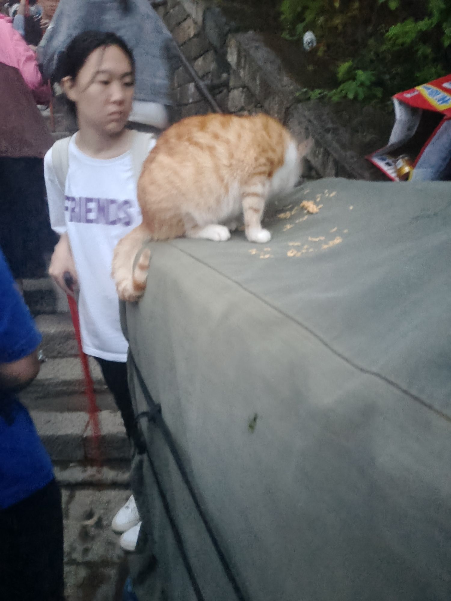 爬泰山遇见一只猫。笑死我了。大肥猫
