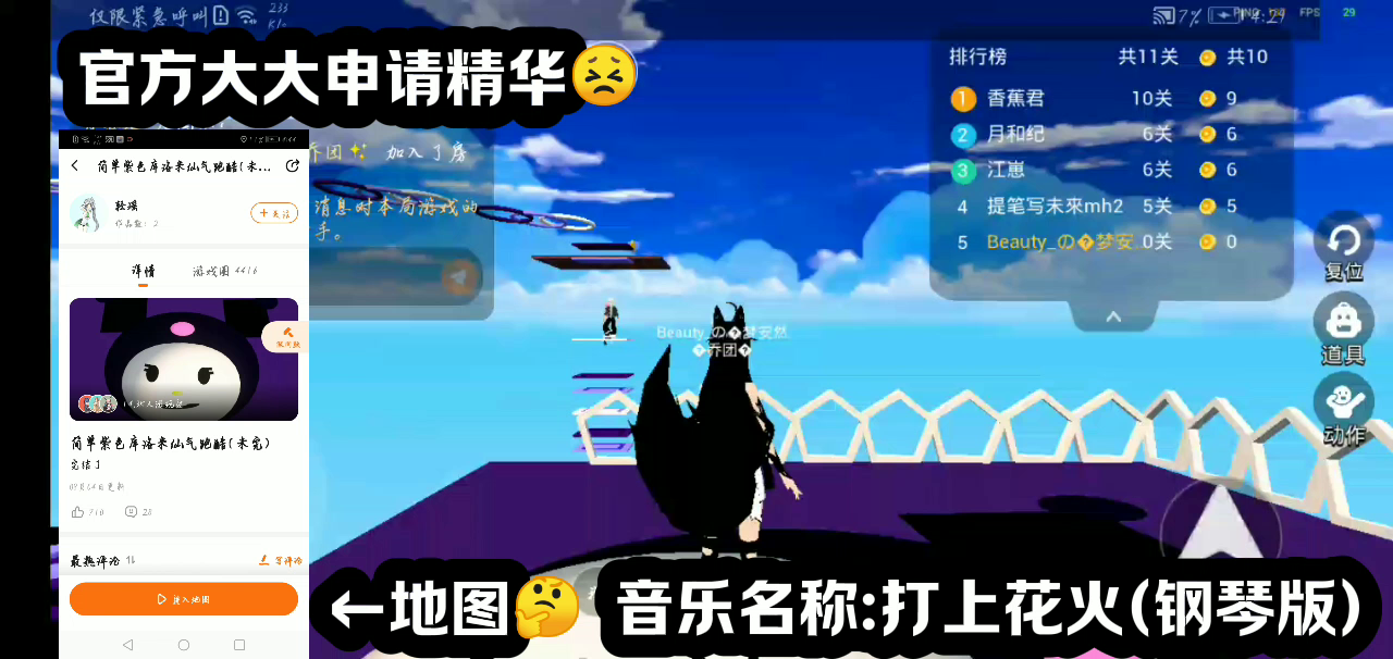 这是一篇社区游戏帖,展示了角色在黑白风格的闯关地图里的跑酷过程,作者申请帖子加精华,同时求关注。