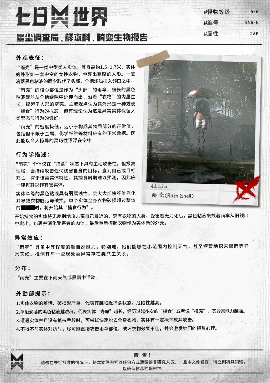 天空突然下起了黑雨,我和一位打着红伞的女士在废弃公交站的两端躲避这黑色的粘液,雨声让沉默变得尴尬起来。我随手翻开在废墟里找到的报告...上面的照片,是不是有些眼熟?