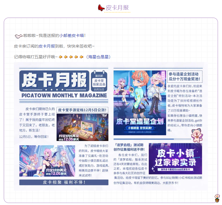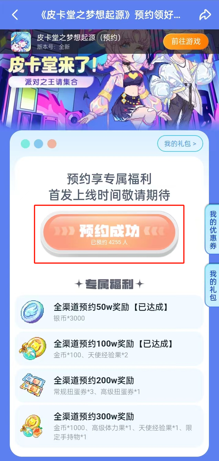 目前预约游戏还有丰富的礼包可以领取噢!快来预约【皮卡堂】吧!!!活动页面的跳转链接