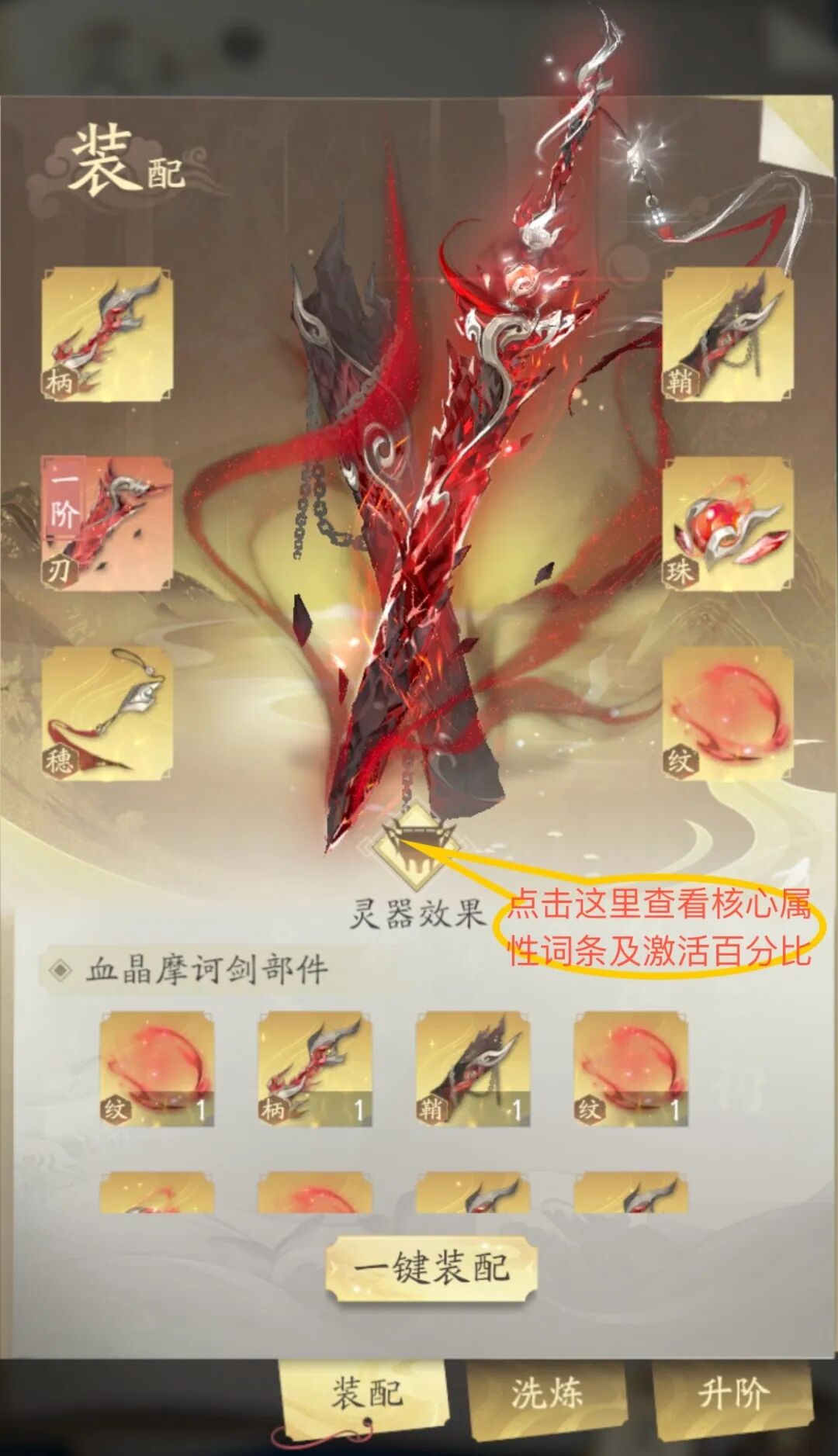 第一步先学会查看【灵器效果】确定核心属性词条。