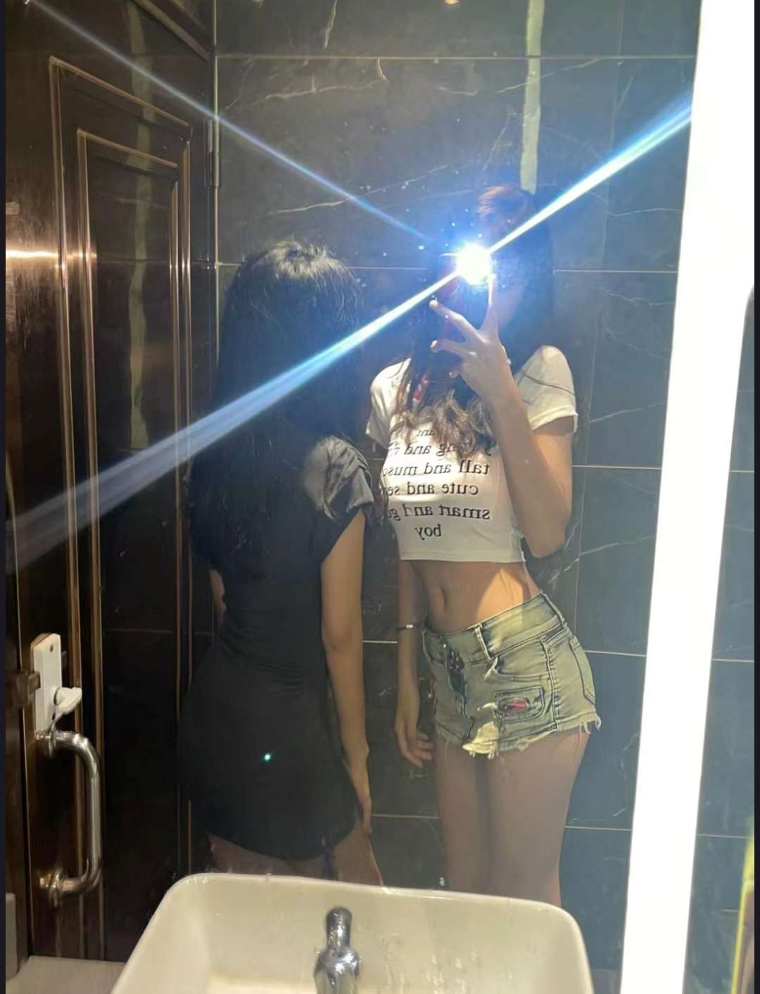去酒吧玩啦,在酒吧洗手间和姐妹拍个照