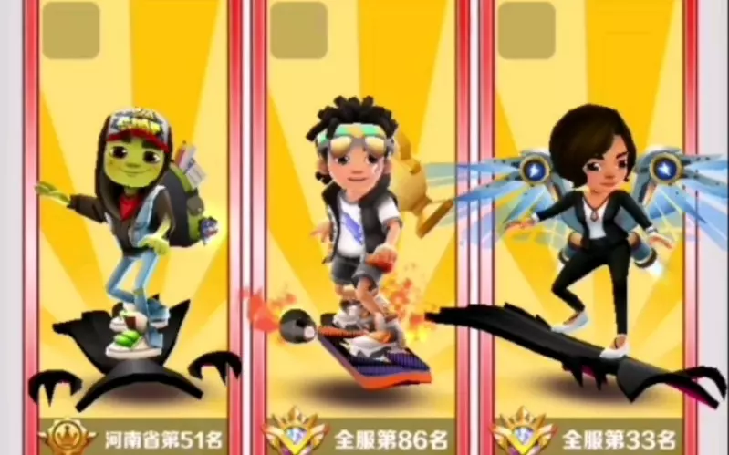 这是《地铁跑酷》的社区分享帖,展示了游戏中的三人道具赛玩法,呈现了角色在赛道上竞速的过程,还有游戏内的角色卡牌,作者申请精华、周刊及加入精英团。