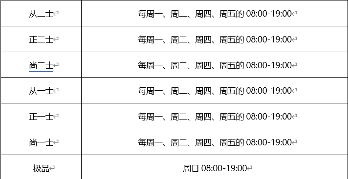 各品阶对应报考时间: