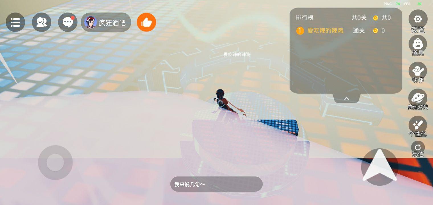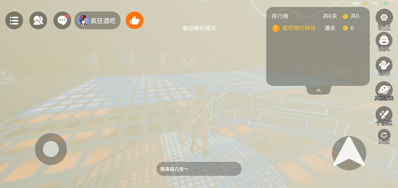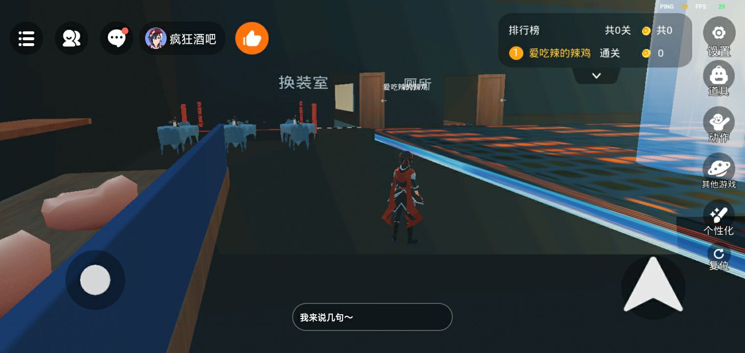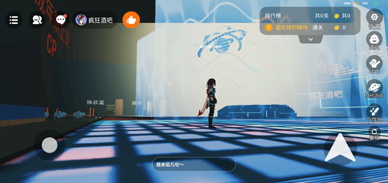 玩家分享了休闲游戏里“疯狂酒吧”新地图的游玩画面,展示了地图内的舞台、换装室等场景,热情邀请大家来玩,还能看到游戏内的排行榜等功能界面。