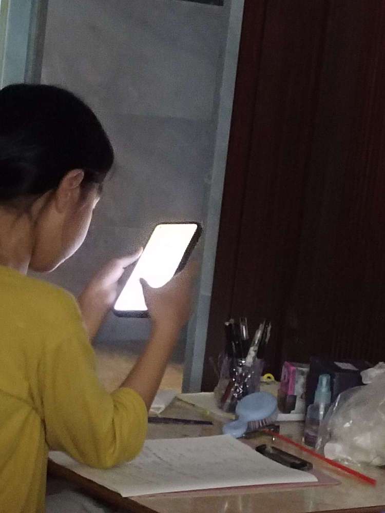 看我妹在玩手机。妹:啊我没玩手机啊!