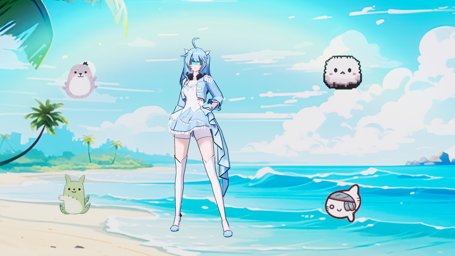 很多的小动物一起去沙滩。