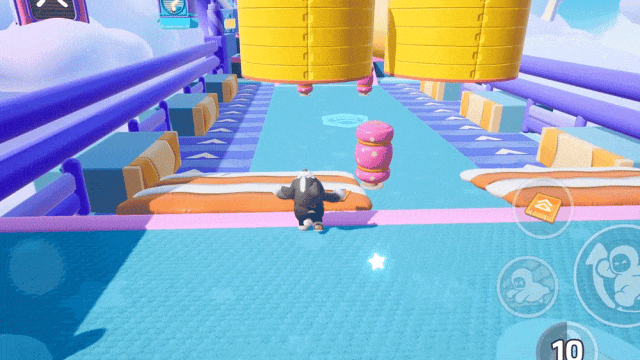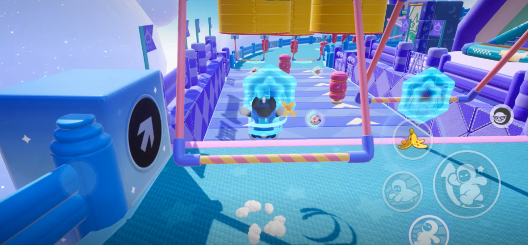 咦,这个栏杆障碍看起来好像很好吃的亚子......重点错!回到正题,这次新地图的跨栏障碍比较低,但会前后摆动,只要掌握好距离轻轻一跳即可通过,值得注意的是,跨栏前也会有加速点,经过加速点实现闪电速度的一百米跨栏赛跑吧(ง •_•)ง!
