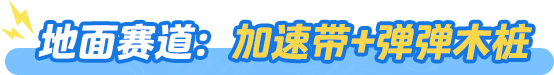 地面赛道布满了加速带,什么?加速带?竞速星宝狂喜!但在加速带上飞奔时千万不要得意忘形哦,哼哼,前面的一排弹弹木桩可不是好惹的,一不小心撞上去可就不是一般的撞击咯,会变成连续回旋撞哒!