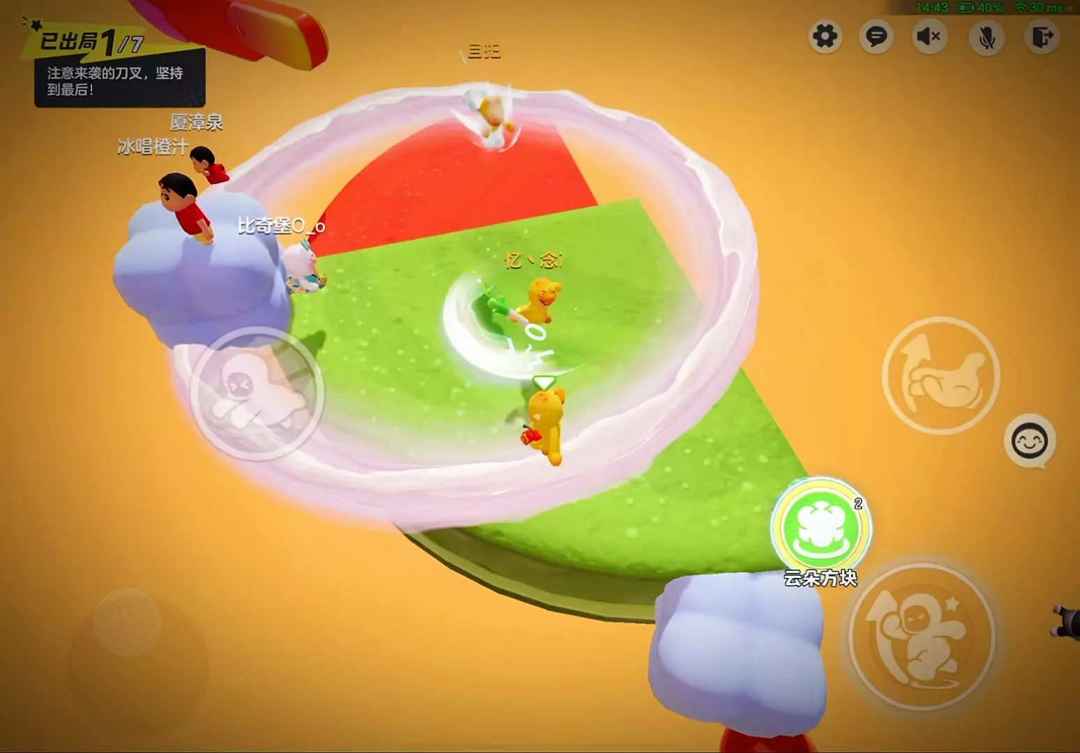飞扑落地后,你应该已经遥遥领先啦~此时将面对摆锤阻拦的障碍。由于机关设置较为简单,因此建议大家加速通过。如果吃到火箭背包等道具,也可以看情况使用。这里加速通过的原因是希望能够将优势滚雪球,进一步拉开与对手的差距,提升容错。