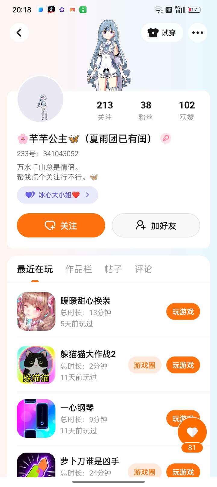 对的,我也是来涨粉啦,就是下面这个人,人真的超好哦,家人们冲冲冲啊,涨到300百!