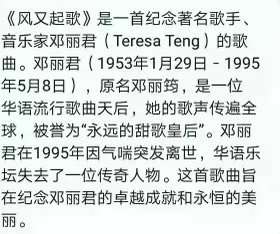 《风又起》歌是一首纪念著名歌手:音乐家邓丽君