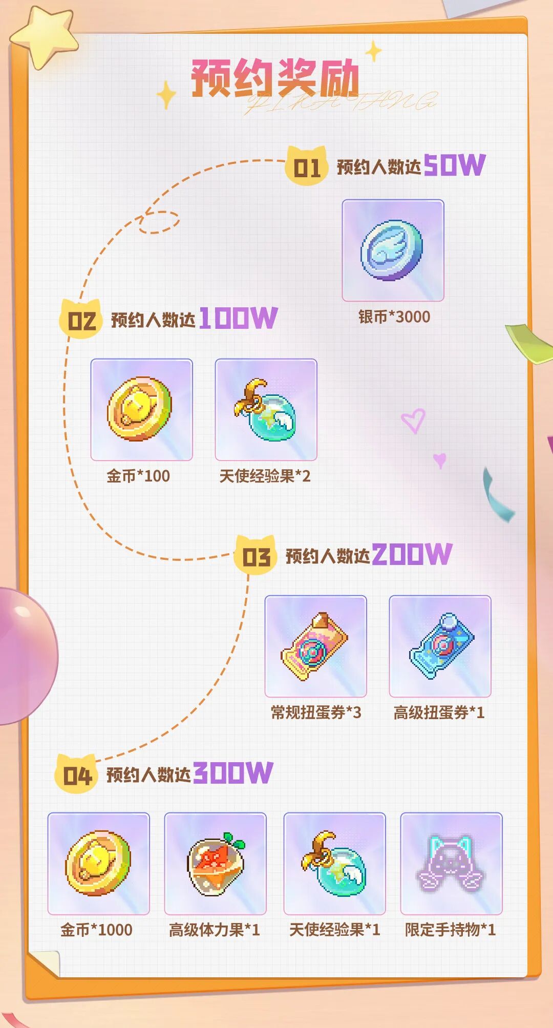 领取金币、扭蛋券和限定手持物等专属福利哦~!