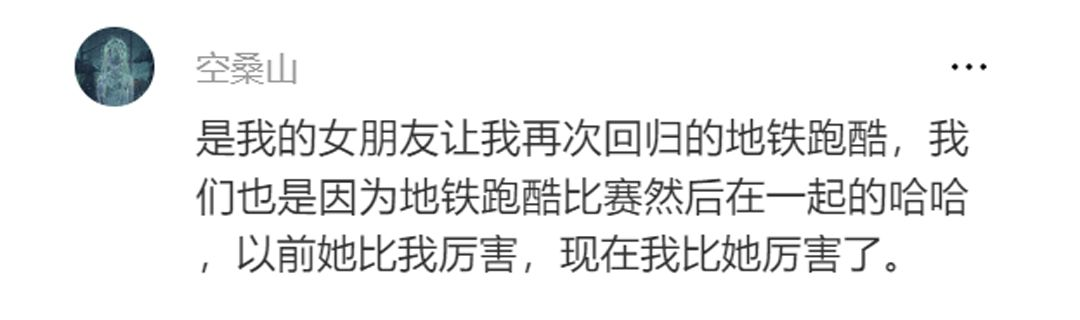 跑酷君:“宫崎骏在《千与千寻》中阐述了他的人生观 '人生就是一列开往坟墓的列车,路途上会有很多站,很难有人可以自始至终陪着走完。当陪你的人要下车时,即使不舍也该心存感激,然后挥手道别。' 虽然小呵已经下车了,但是在未来的跑酷之旅中,你还会遇到更多的跑友,留下更美好的回忆!祝你在《地铁跑酷》玩得开心~”