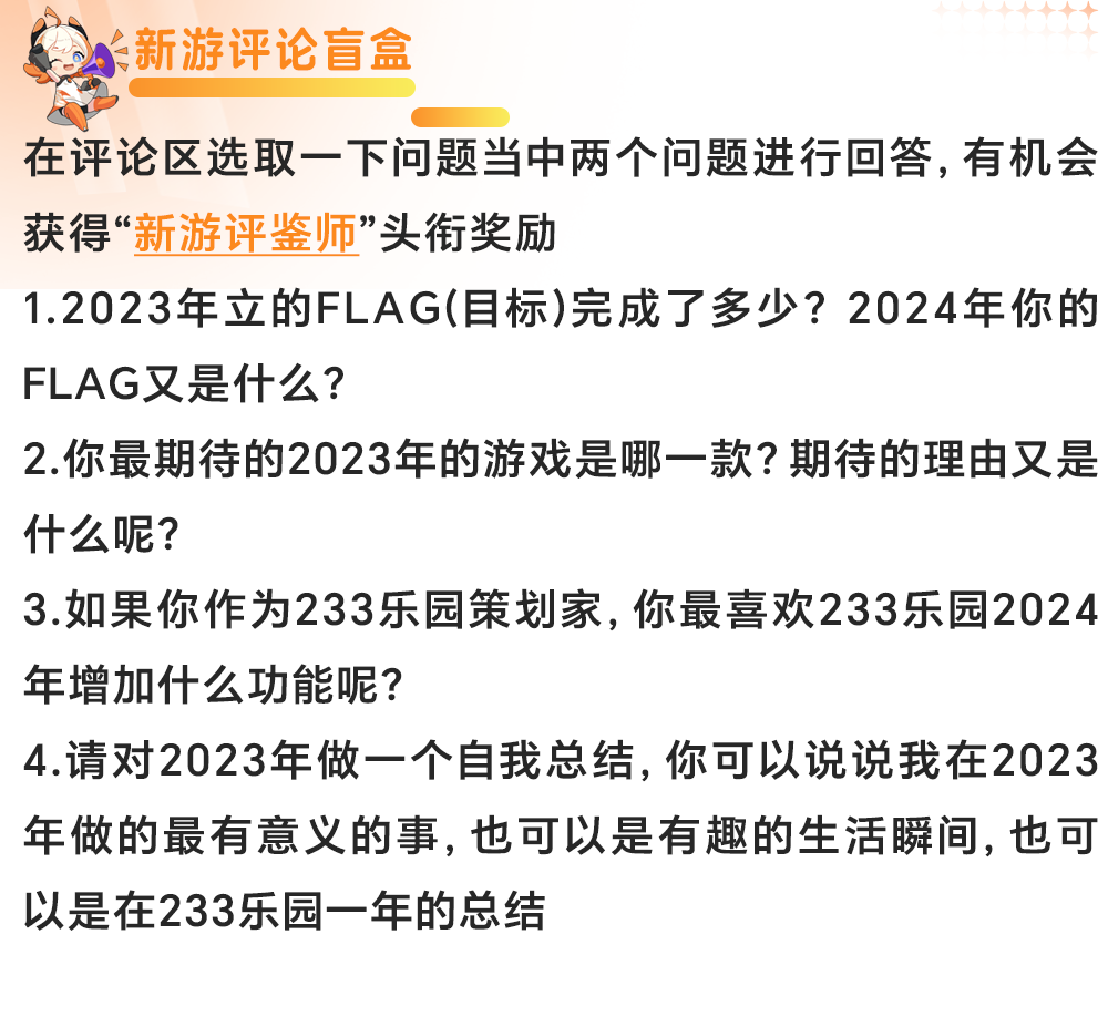 新游到这里也就结束啦!!很高兴在233乐园与你们相遇,2024我们继续同行,在233乐园广阔天地创造更多有意义的事情!!我是枳枳,喜欢我的作品留个关注呦!!!