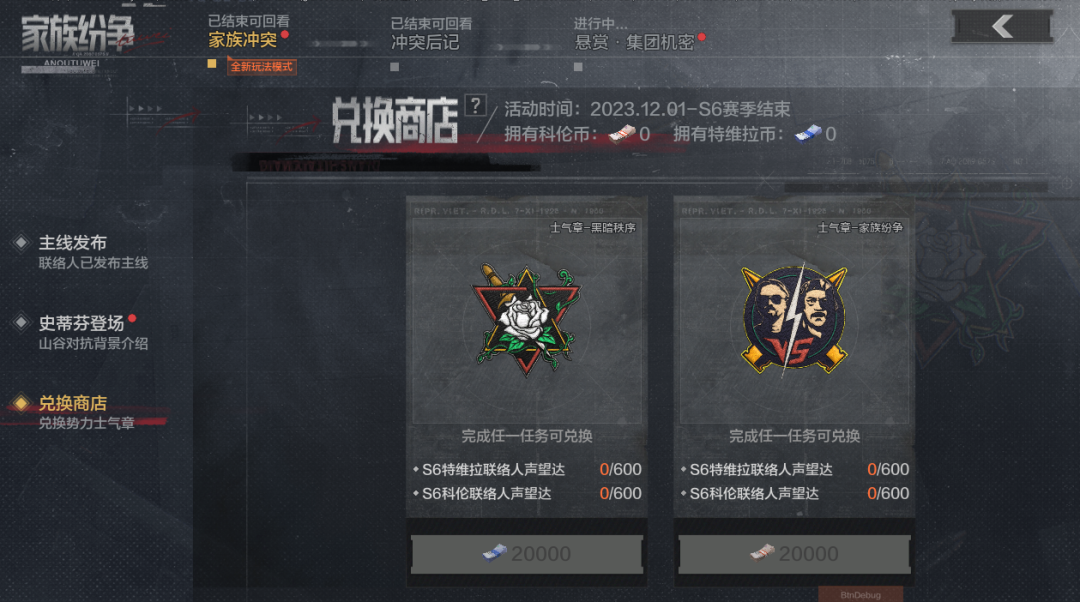 全新士气章也随着版本上线开启兑换,先锋可以积累特维拉和科伦的联络人声望并付出势力币来兑换【黑暗秩序】和【家族纷争】两款士气章。