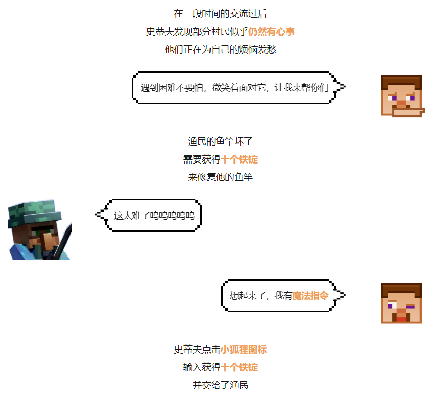 下面是一些特殊职业村民们的任务 快跟史蒂夫一起 快帮助他们 完成任务 并获得好感度吧~