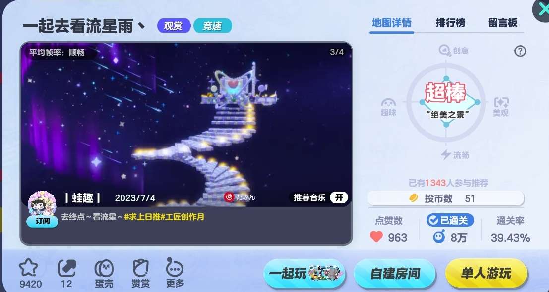 这个地图非常适合带上朋友和蛋搭子一起去终点打卡!闪亮的流星雨从天空划过💞