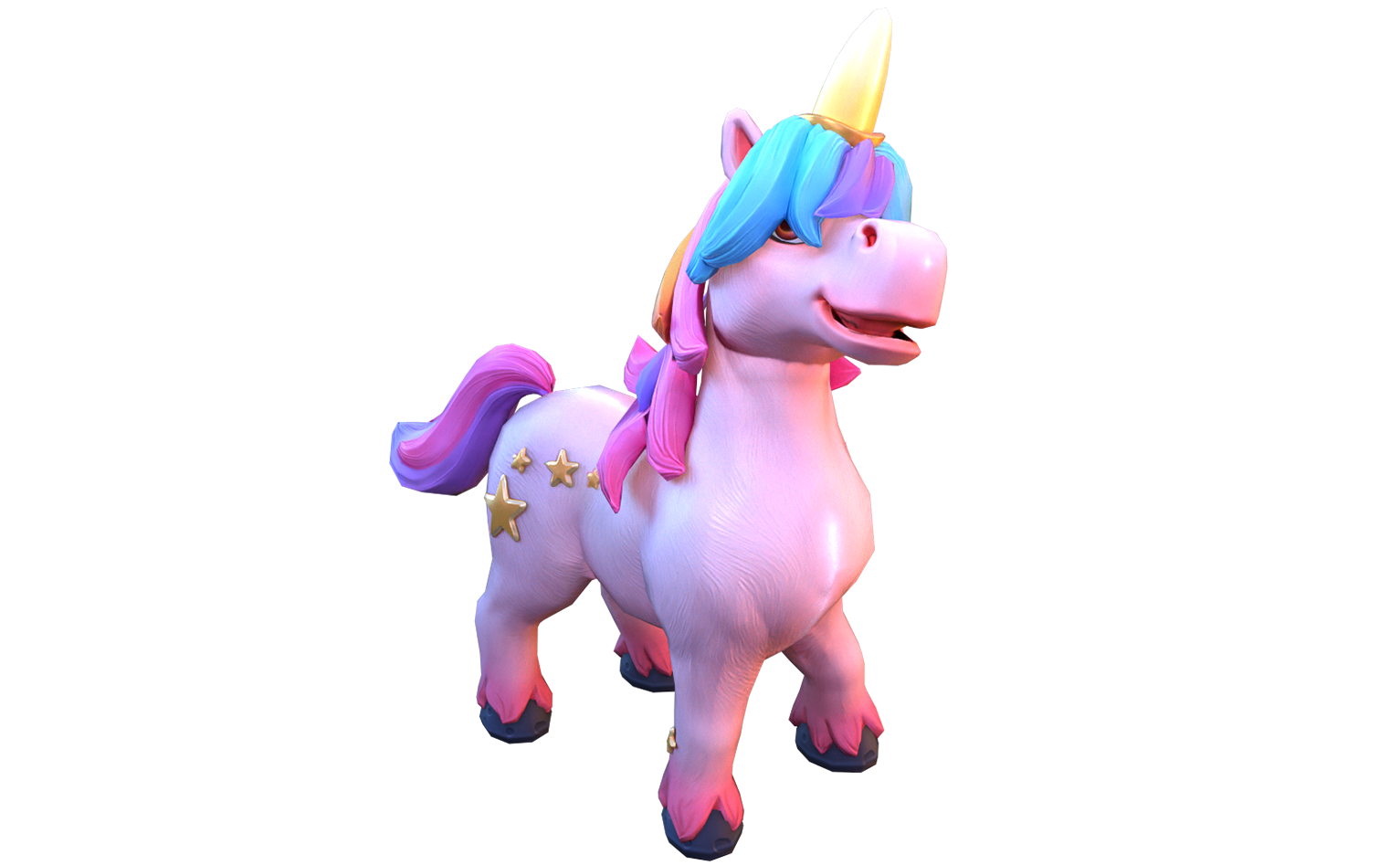独角马是一种高贵神圣的生物。它浑身洁白,拥有缤纷的七色鬃毛,额前有尖尖的独角;它的速度惊人,奔跑时如雷霆闪电,所过之处还会留下一道彩虹般的残影,美丽又梦幻。