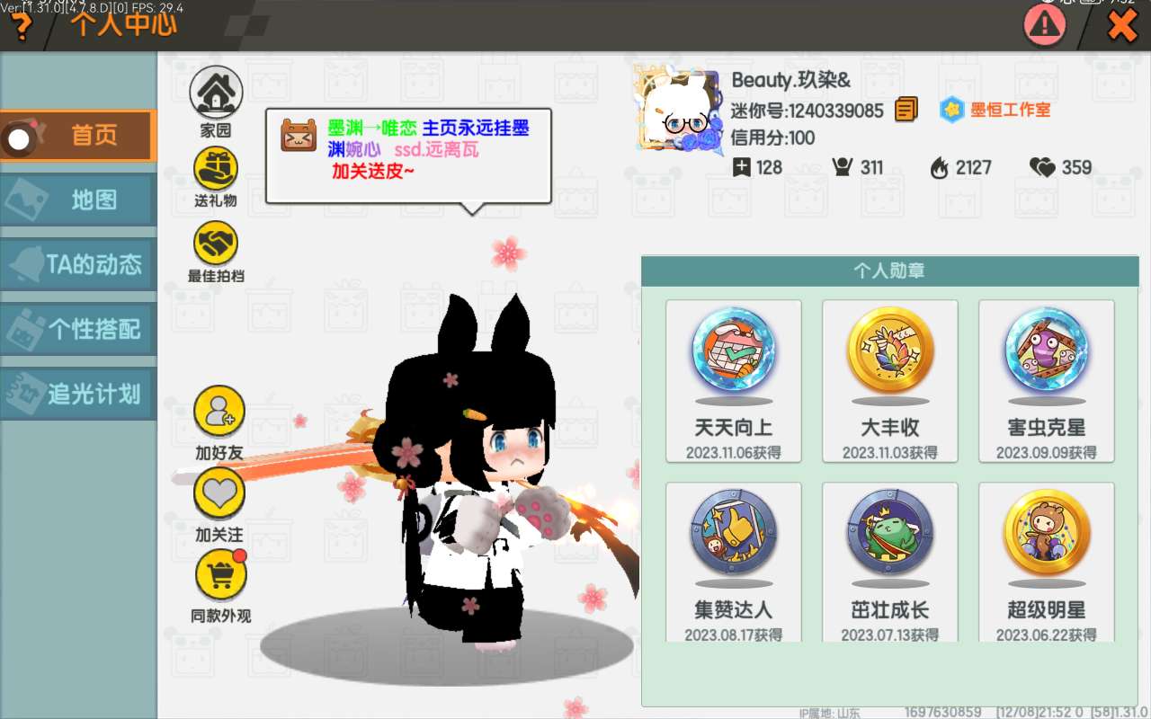 关注他迷你 加他好友,他可能会送你东西 反正他送了我
