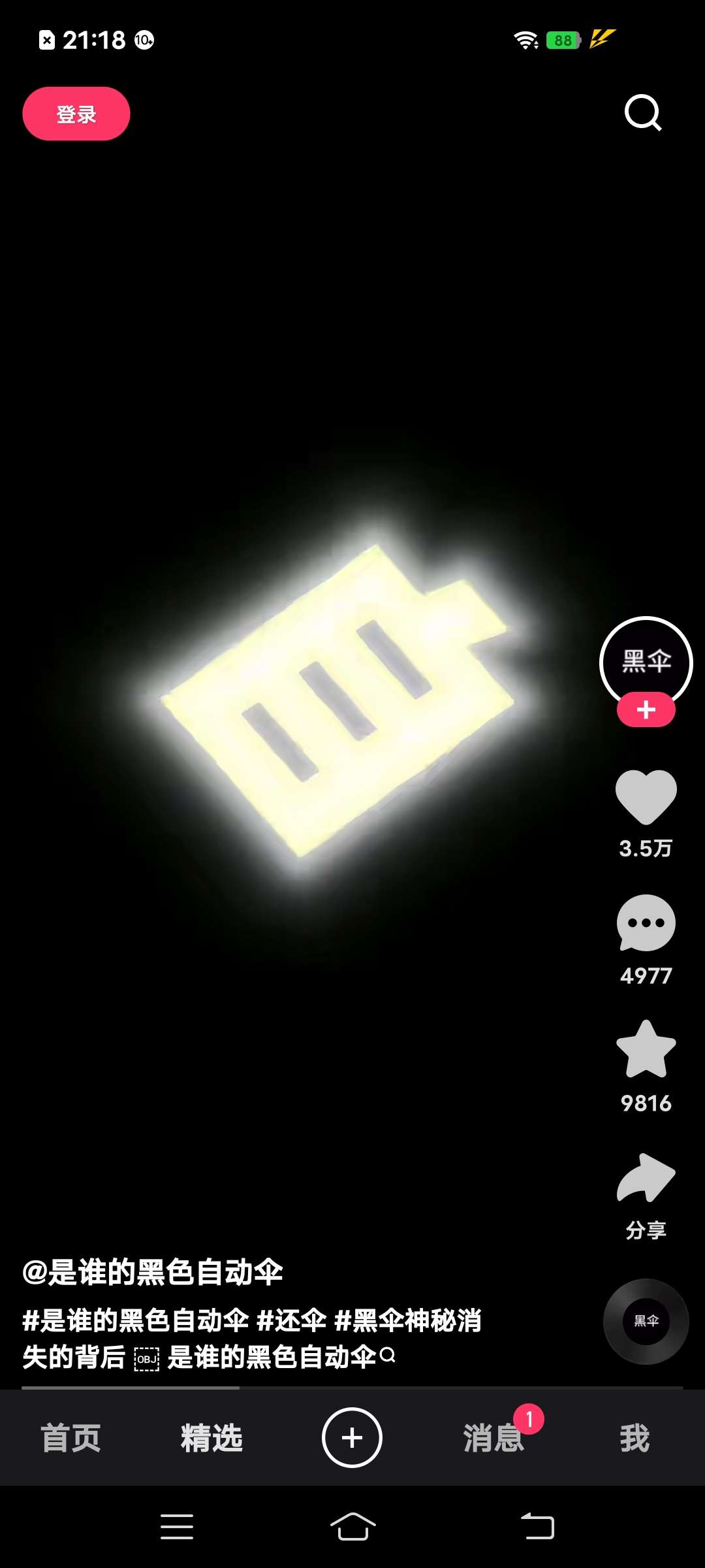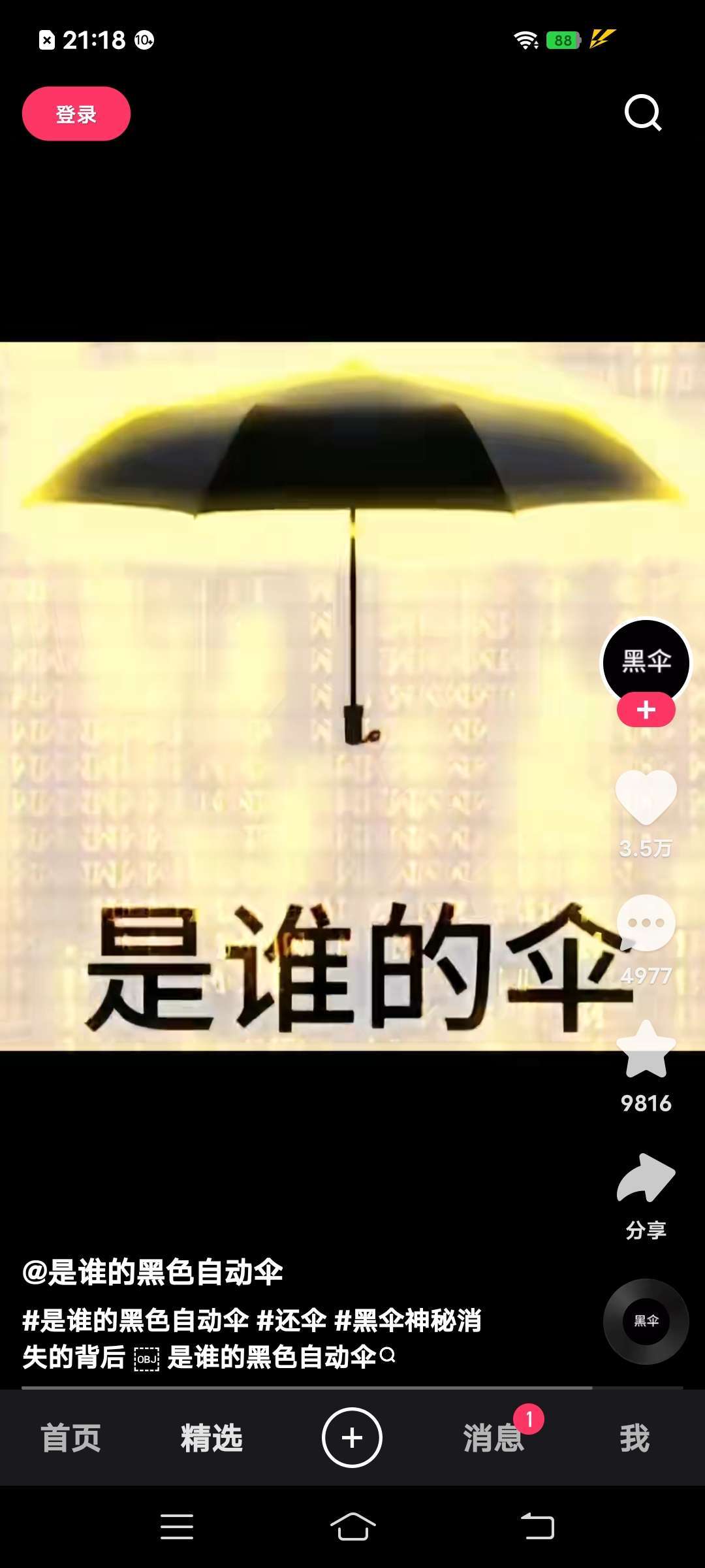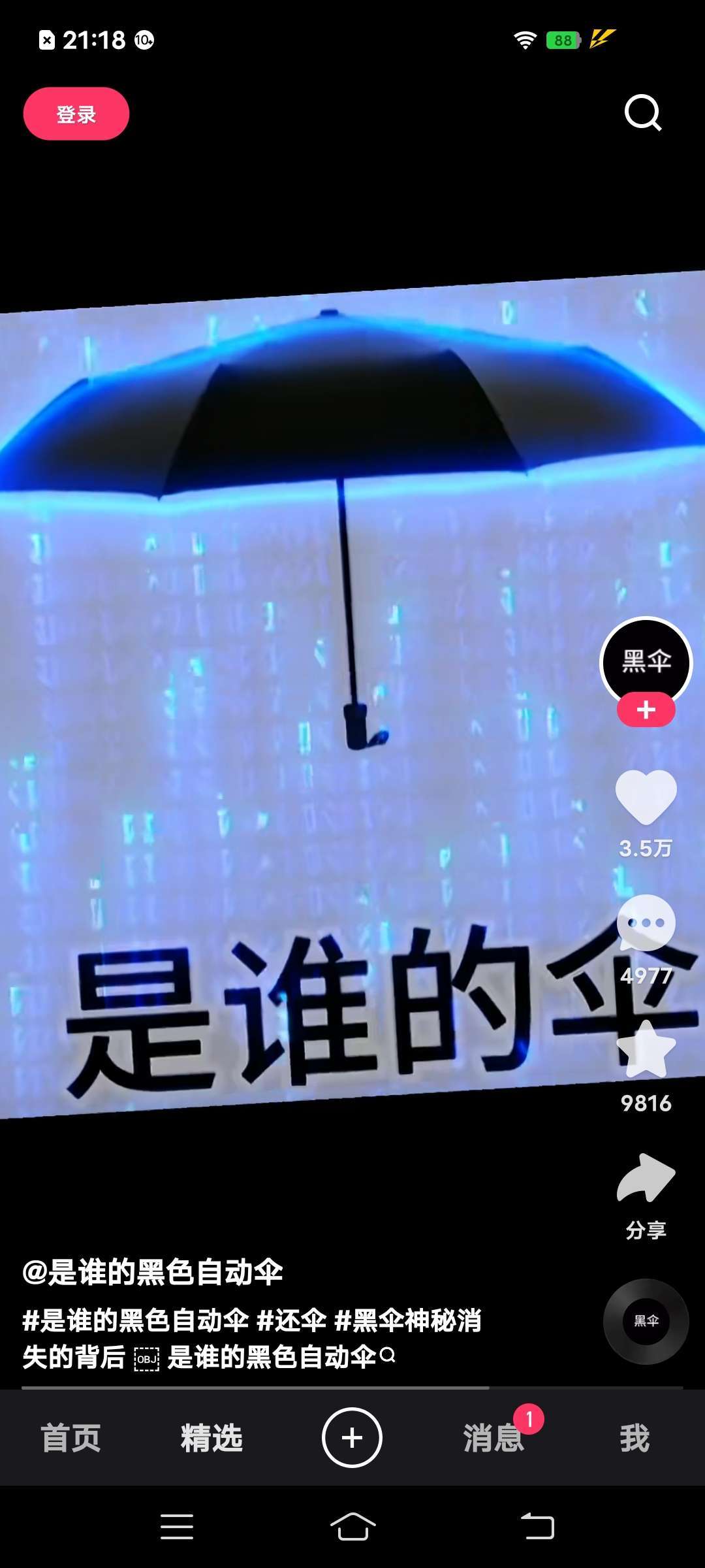 家人们,前段时间很火的黑色雨伞。在快手里刷到了,截了点图。