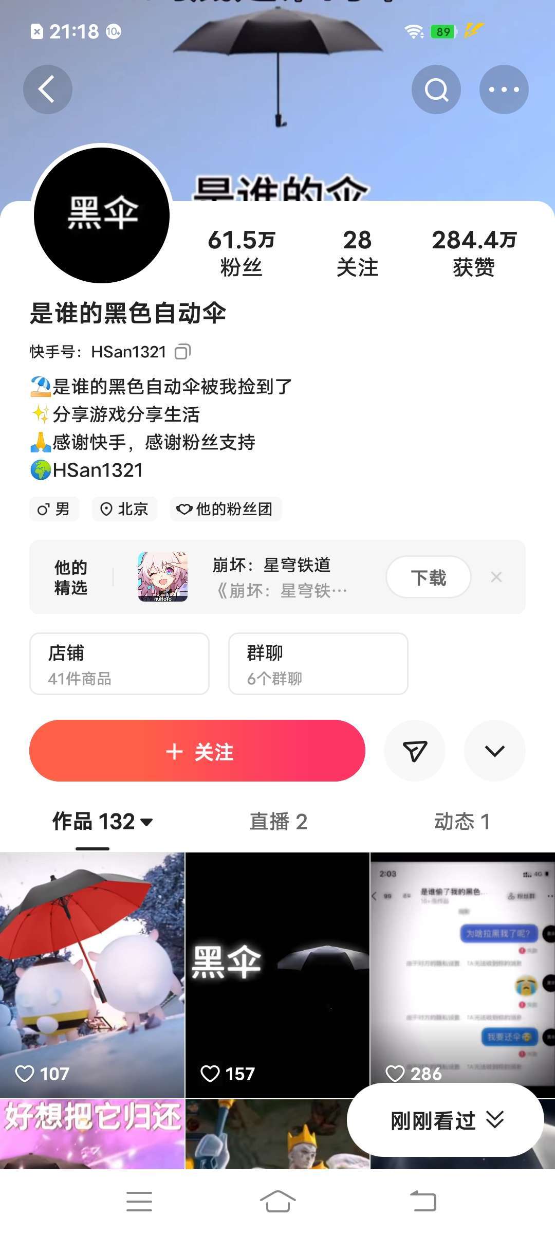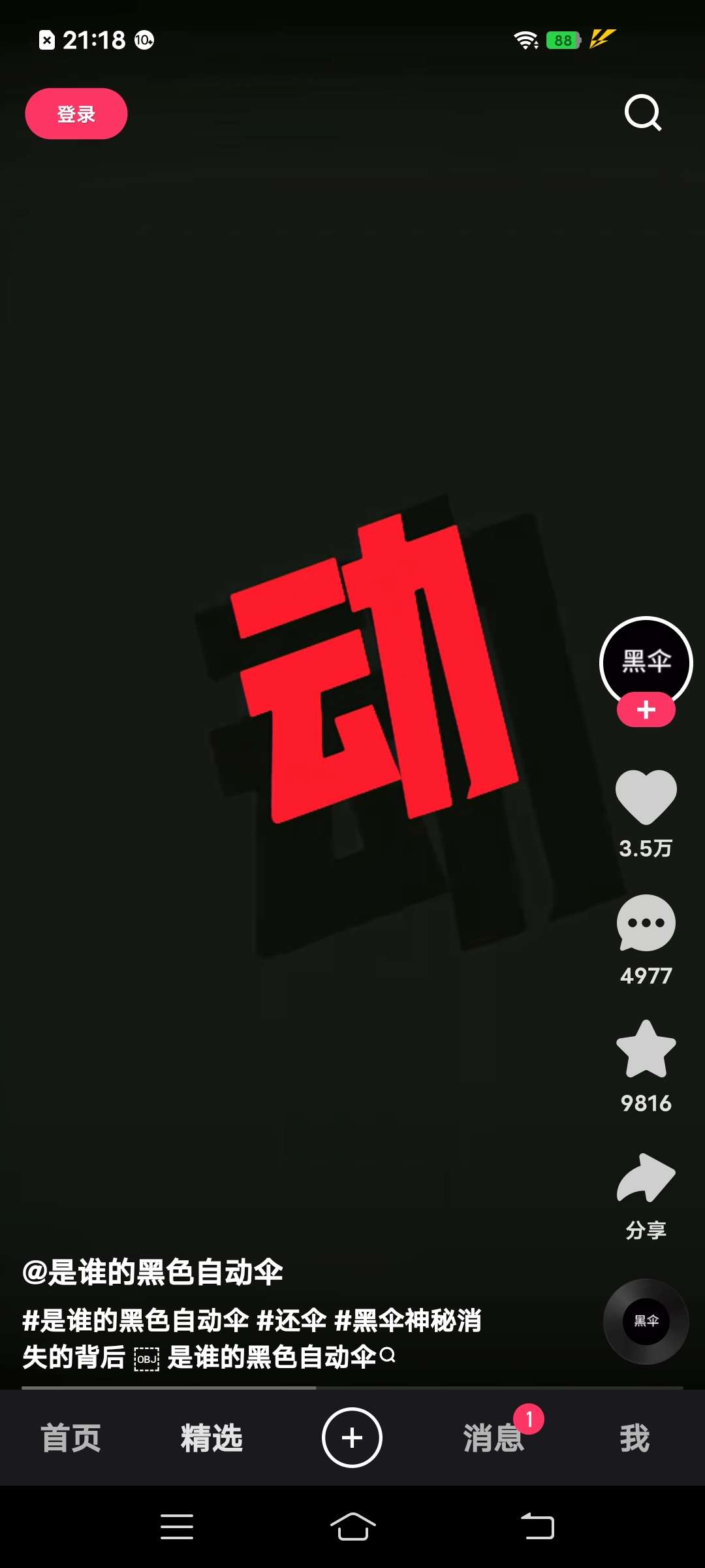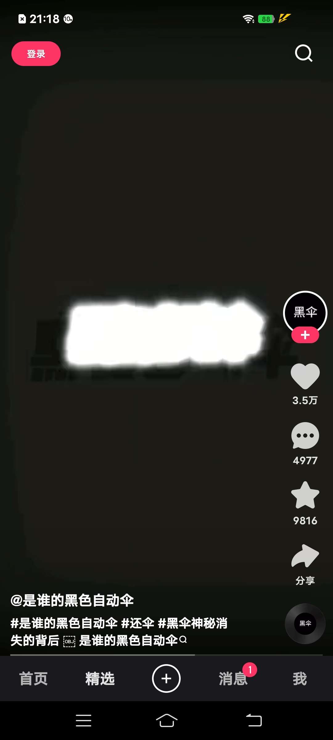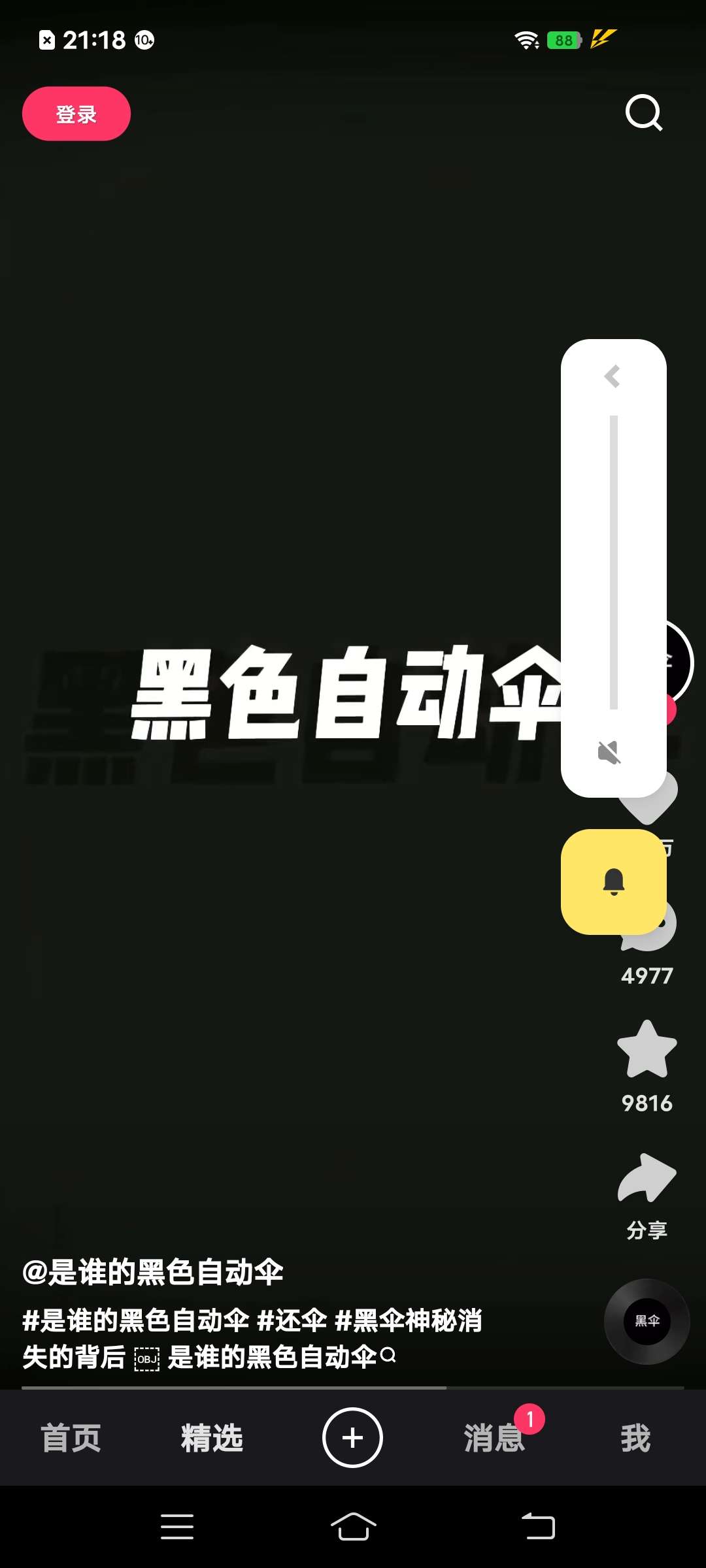 家人们,前段时间很火的黑色雨伞。在快手里刷到了,截了点图。