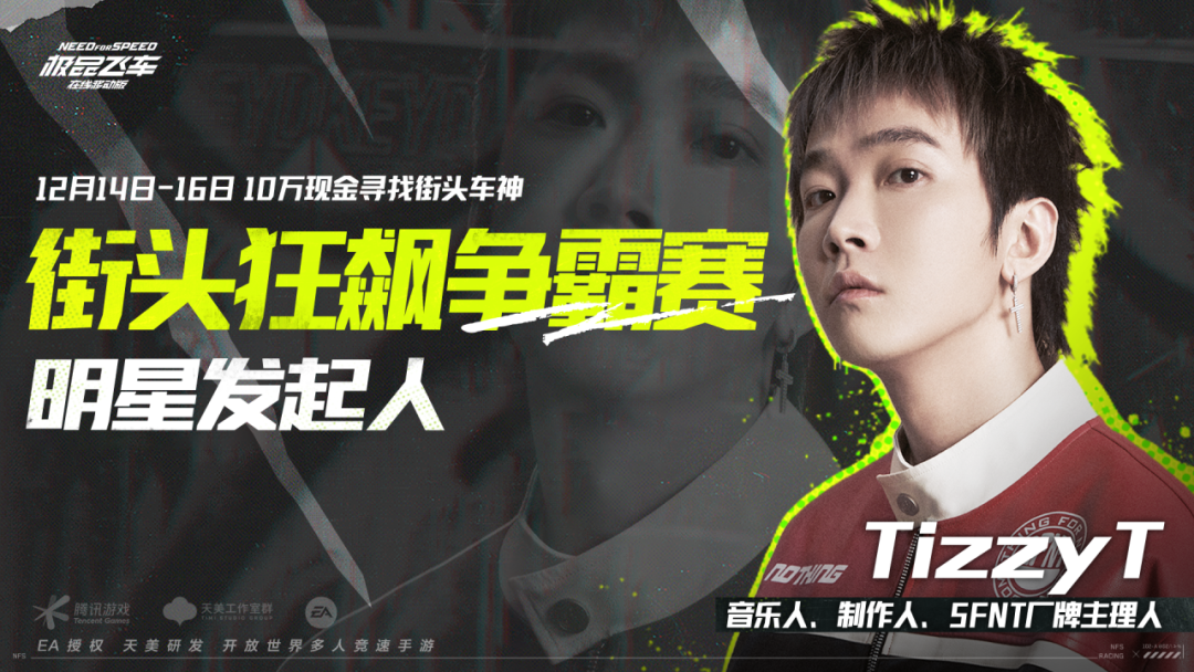 音乐人、制作人、SFNT厂牌主理人@Tizzy_T___担任本次狂飙争霸赛的明星发起人!TizzyT携手狂飙观赛团在狂飙争霸赛中寻找街头车神!