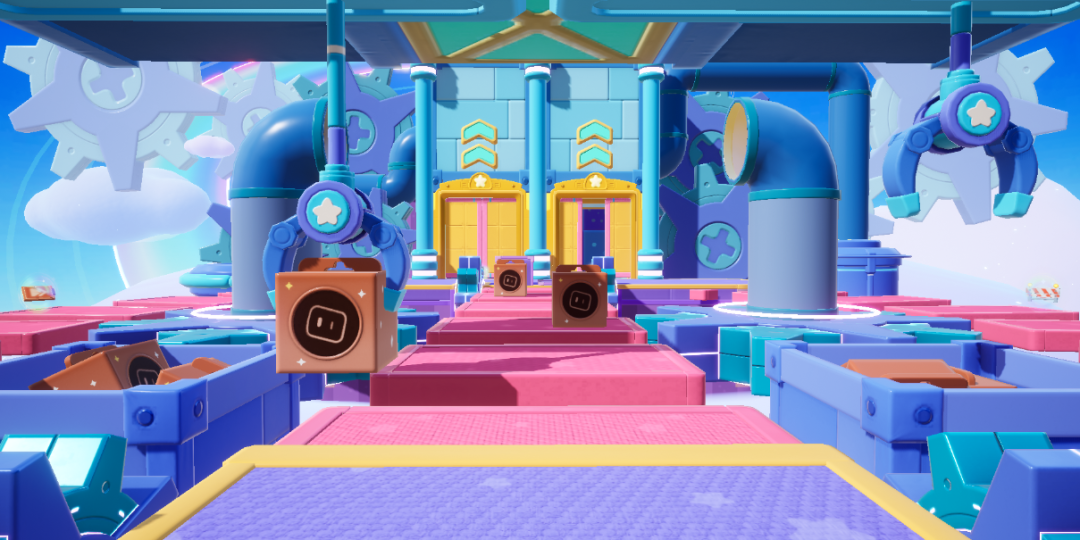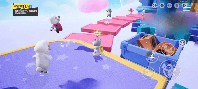 《积木工厂》属于竞速类趣味闯关地图,各位星宝们需要连续穿过【移动扶梯】、【传输方块】、【升降方块】、【找准棉花】等重重困难,在规定的时间内用最快的速度到达最后的终点就算胜利啦!