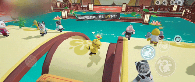 在第一阶段中,星宝站上旋转的滚筒上,要小心其他星宝的突然袭击,毕竟滚筒在旋转时,稍微用力就会被被甩出去。因此星宝们记得注意保持安全距离,避免被突然抓住,直接掉到池塘里洗澡。
